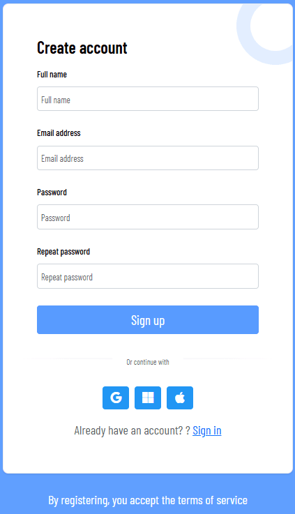 The registration process via the Google service is very simple — we do not perform a traditional registration, but instead provide immediate login. The system retrieves only the basic user information necessary for the verification process.